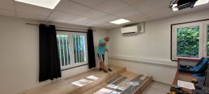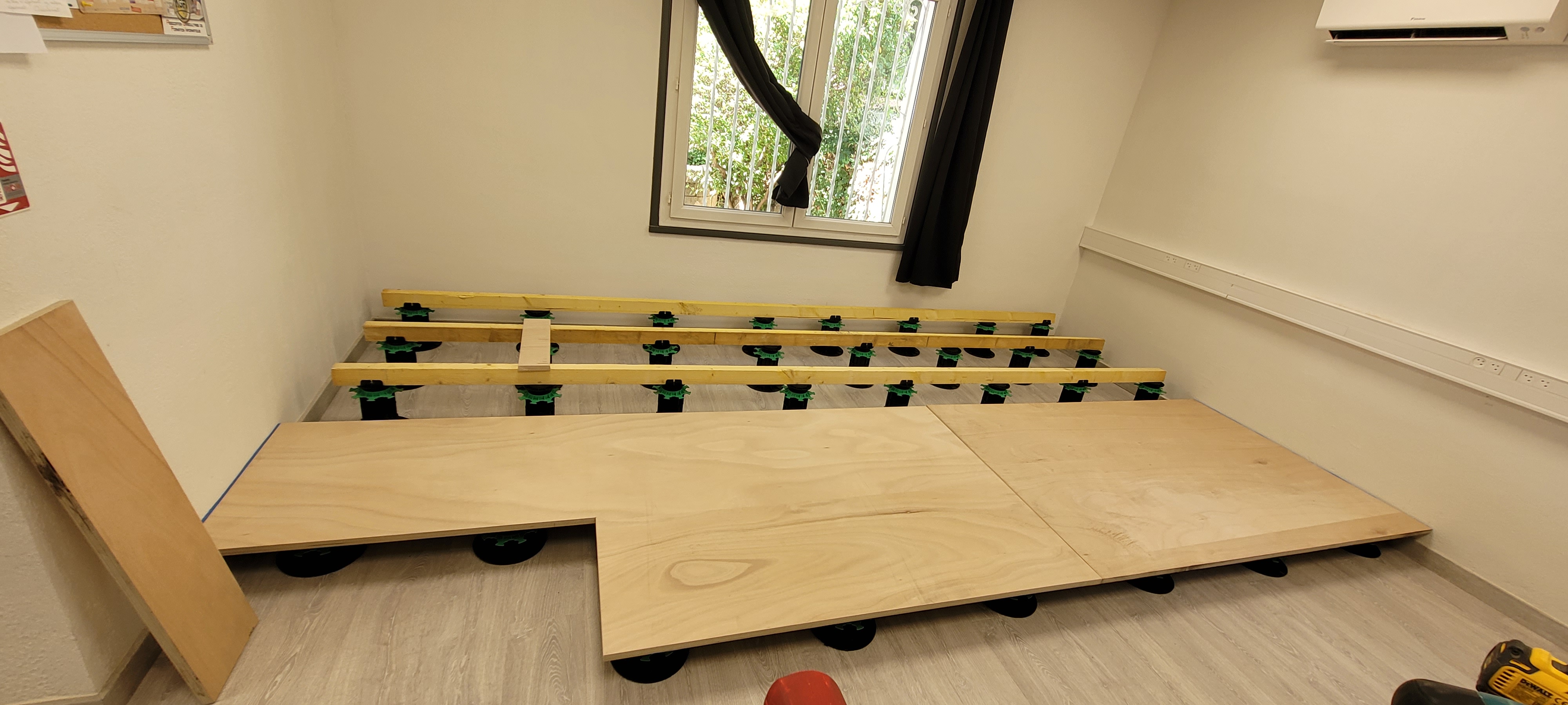 Pour répondre à une demande insistante des adhérents, construction de gradins pour permettre une meilleur visibilité de l’écran de projection.